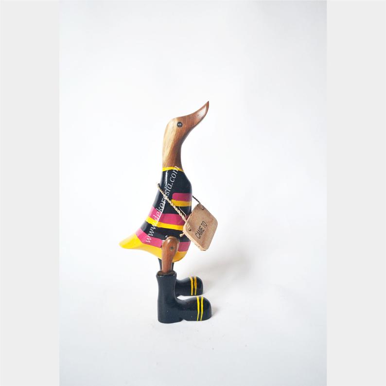 This duck has been made from bamboo tree roots and is hand-carved by artisans in Jogja in beautiful and detailed colors. The head and legs have been carved from pieces of wood and joined to the body. Because Bamboo is one of the fastest growing plants in the world, it is very good as a sustainable resource.