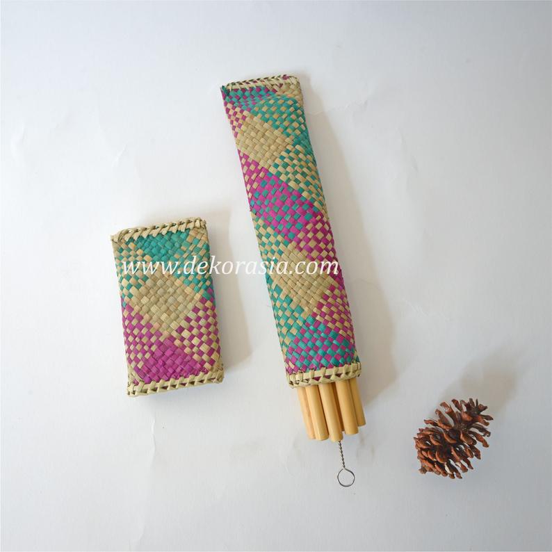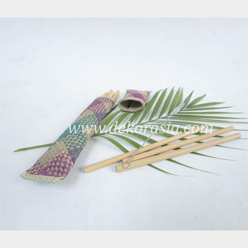 Bamboo Straw Set Type A Flip Oval Package is beautiful with a square pattern that combines purple and green colors so that it becomes a container that looks beautiful to look at. They are easy to clean with the stainless steel brush provided. Bag