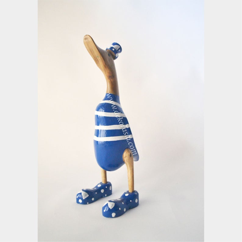 This duck has been made from bamboo tree roots and is hand-carved by artisans in Jogja in beautiful and detailed colors. The head and legs have been carved from pieces of wood and joined to the body. Because Bamboo is one of the fastest growing plants in the world, it is very good as a sustainable resource.