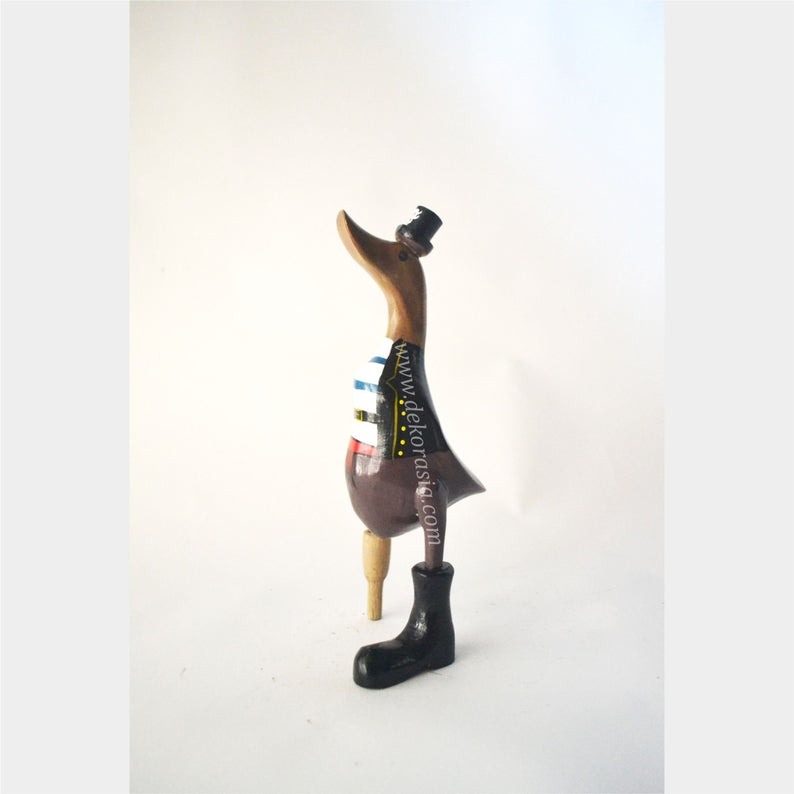 This duck has been made from bamboo tree roots and is hand-carved by artisans in Jogja in beautiful and detailed colors. The head and legs have been carved from pieces of wood and joined to the body. Because Bamboo is one of the fastest growing plants in the world, it is very good as a sustainable resource.