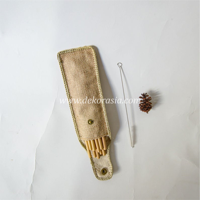 5 pieces of bamboo straws | size d 9-10 mm | 1 Jearami Bambu Bag with Beautiful Button Box | 1 stainless steel cleaning brush