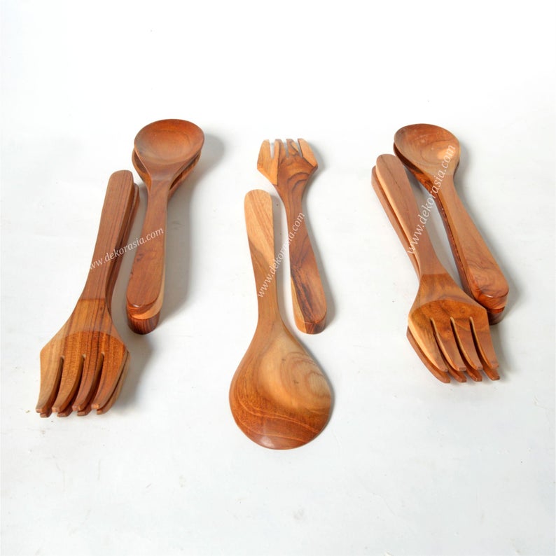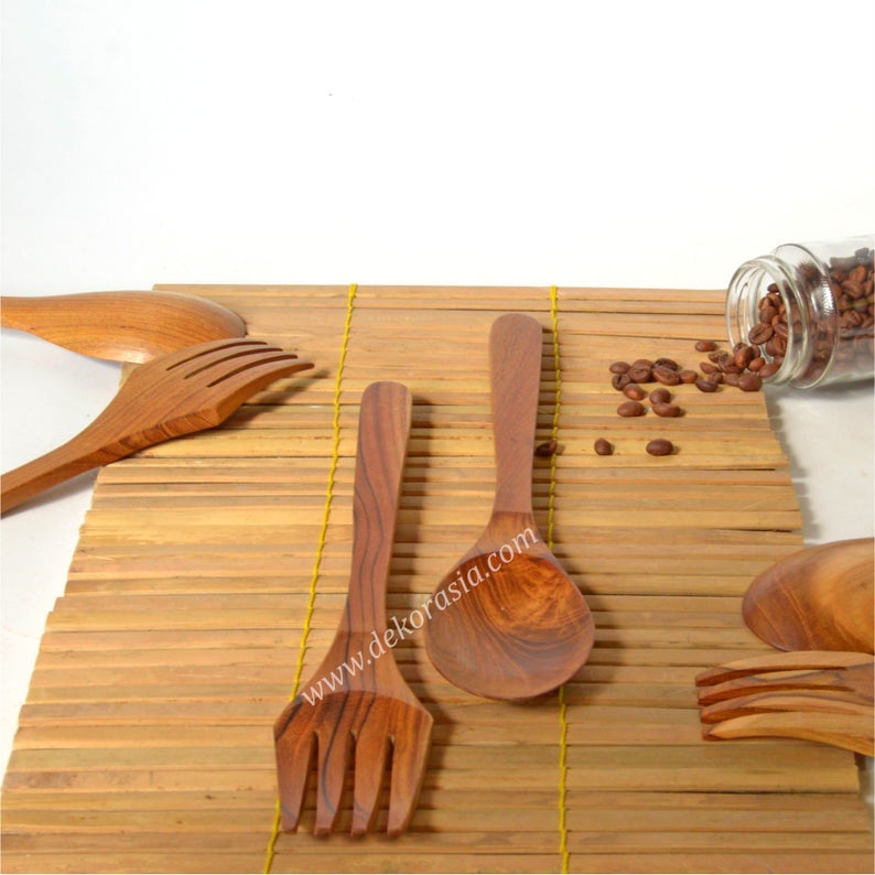 This pair of spoons and forks is made from premium quality teak wood, the best wood you can find in Indonesia with special characters such as unique wood acquisitions, extraordinary lightness but very strong at the same time.
