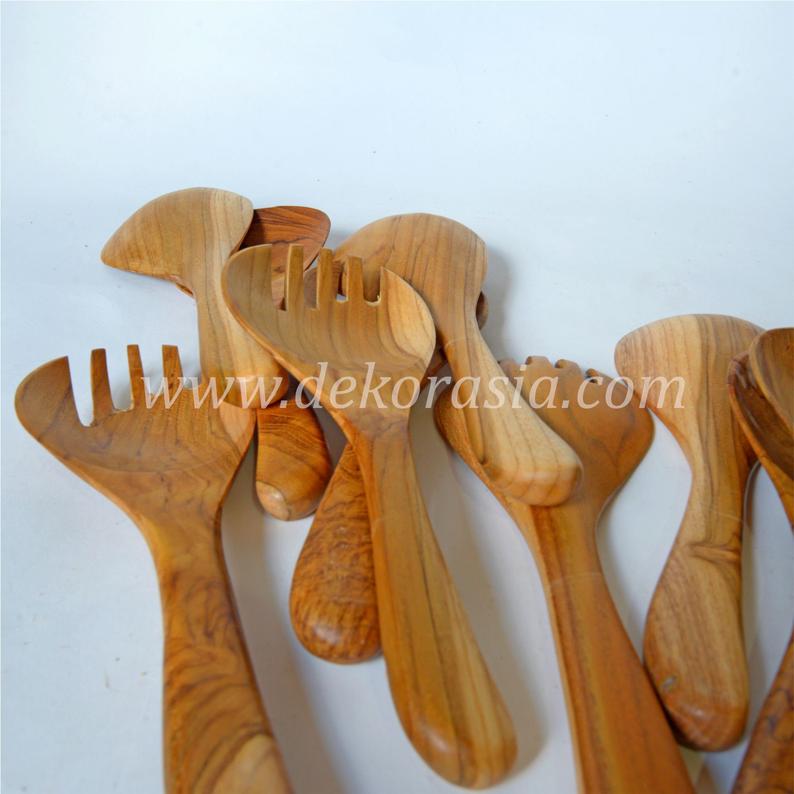 This pair of round spoons and forks is made from premium quality teak wood, the best wood you can find in Indonesia with special characters such as unique wood acquisitions, extraordinary lightness but very strong at the same time.