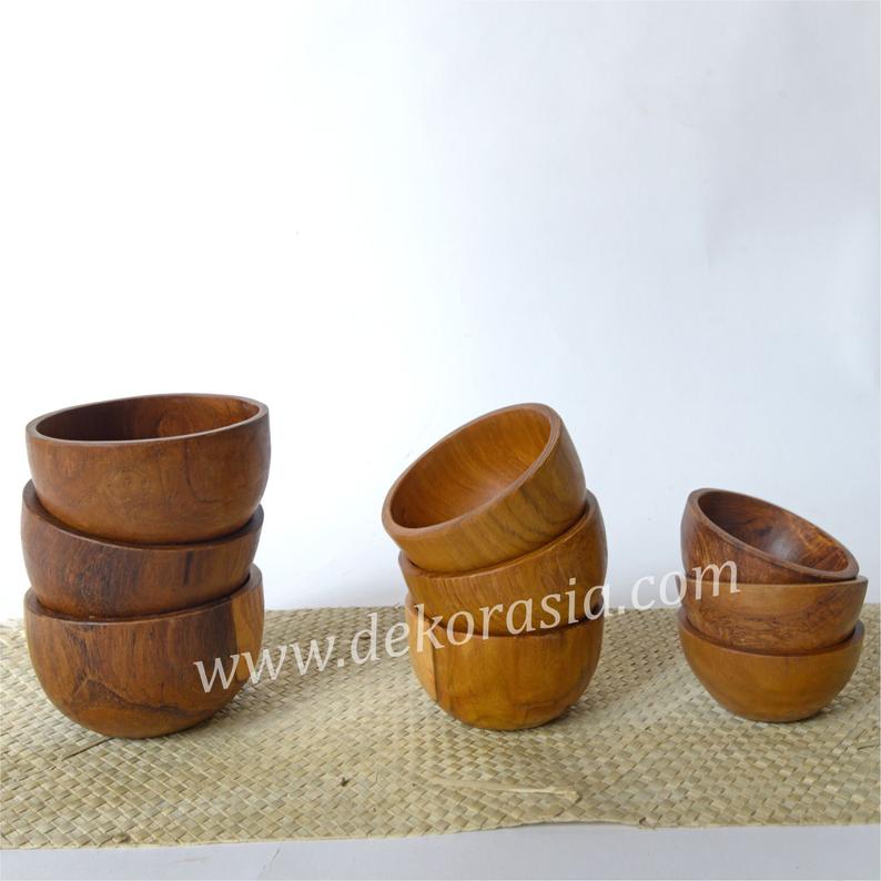 Mini teak wood round are small, hand-held, hemispheric, or cone-shaped containers. mini teak wood round of various sizes and volumes are used as containers for soups and teas and other dishes. Because of their unique shape and round size, these bowls often serve food on a shared table.