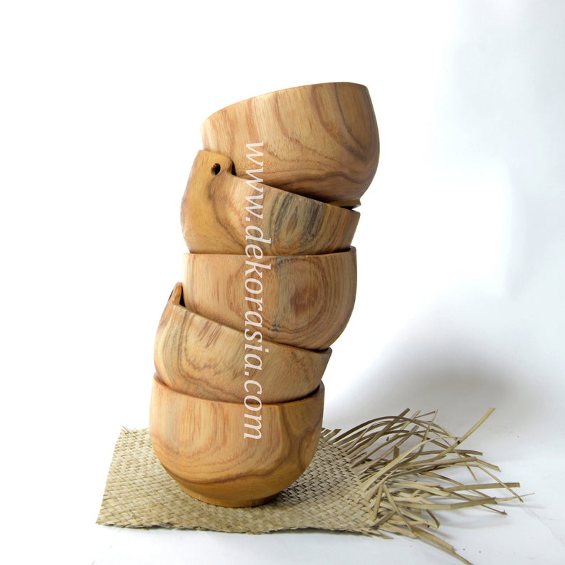 Teak Wood Round Bowl Dish Serving Dessert Diameter 5.4 to 7.8 inches