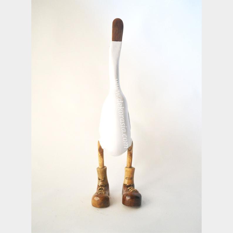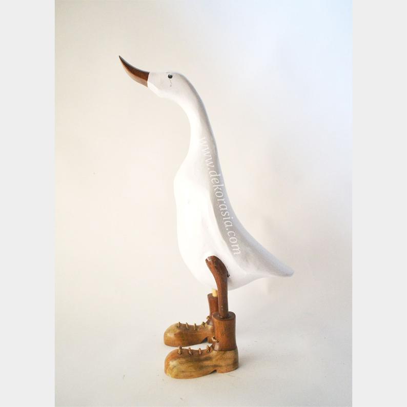 This duck has been made from bamboo tree roots and is hand-carved by artisans in Jogja in beautiful and detailed colors. The head and legs have been carved from pieces of wood and joined to the body. Because Bamboo is one of the fastest growing plants in the world, it is very good as a sustainable resource.