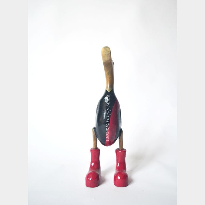 This duck has been made from bamboo tree roots and is hand-carved by artisans in Jogja in beautiful and detailed colors. The head and legs have been carved from pieces of wood and joined to the body. Because Bamboo is one of the fastest growing plants in the world, it is very good as a sustainable resource.