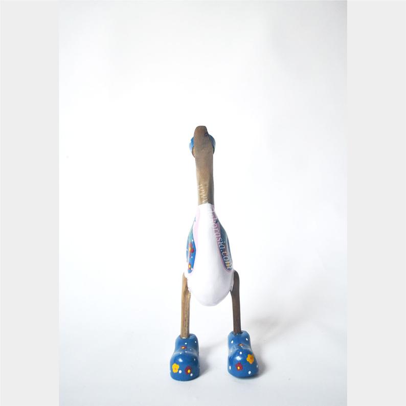 This duck has been made from bamboo tree roots and is hand-carved by artisans in Jogja in beautiful and detailed colors. The head and legs have been carved from pieces of wood and joined to the body. Because Bamboo is one of the fastest growing plants in the world, it is very good as a sustainable resource.